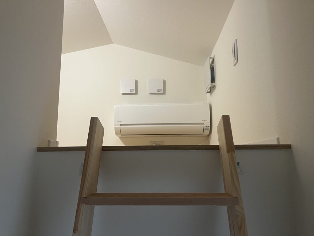 この家では、エアコンをロフトに設置しています。