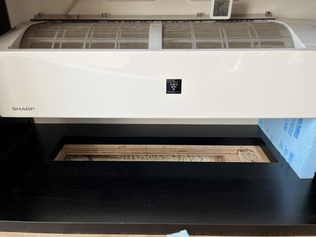 今回は、お施主様がこれまで使用されていたエアコン(中古)で暖房が賄えるという計算結果だったため、10畳用のエアコンを設置しています。