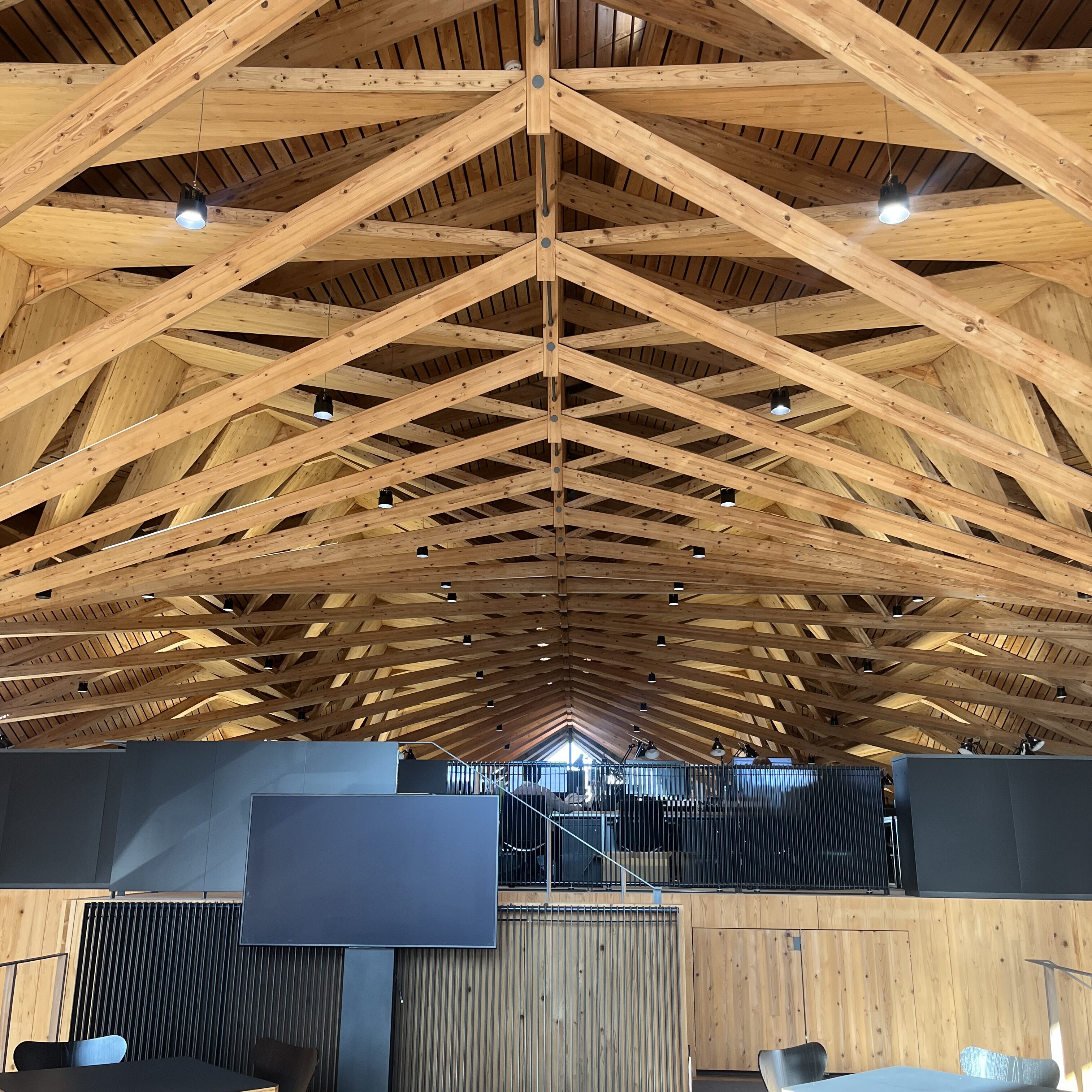 - トラス構造やCLTをあえて現し(あらわし)にしたデザイン
